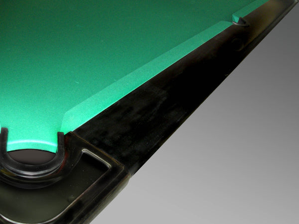 Igralište: Jednodelna ploča od škriljca debljine 19 mm, prekrivena visokokvalitetnim štofom (80% vuna, 20% najlon) dostupnim u zelenoj, plavoj, crvenoj ili boji lososa.