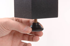 Nogare: Čvrste kvadratne nogare dimenzija 7,5 x 7,5 cm od MDF-a sa crnim melaminskim premazom, opremljene nivelatorima za savršeno poravnanje na neravnim površinama.