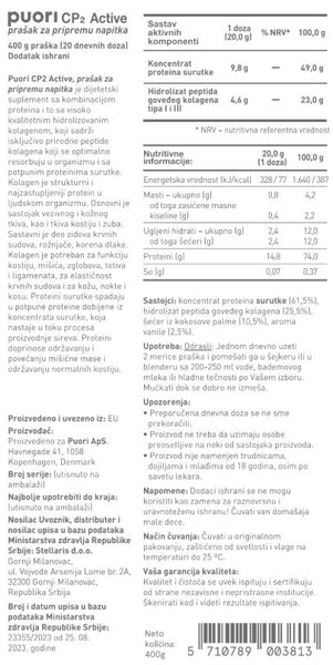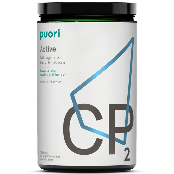 Puori CP2 Active je inovativni proteinski proizvod sa ukusom vanile koji kombinuje kolagen i protein surutke, što proizvodu daje jedinstven profil aminokiselina sa fokusom na mišiće, kosti i zglobove.