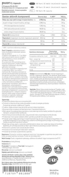 3 gel kapsule Puori O3 (2000mg ukupnih omega 3 /1250mg EPA, 500mg DHA) - Ultra čisto i sveže riblje ulje od riba ulovljenih u prirodnom staništu, sa dodatom prirodnom aroma limuna od pravih limuna. Prirodno ekstrahovani vitamin E se dodaje ribljem ulju kako bi se osiguralo da ostane sveže.