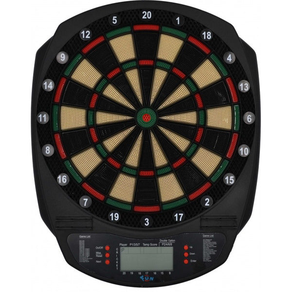 Elektronski pikado aparat namenjen za kućnu upotrebu. Elektronski pikado aparat radi na 3 AA baterije, a takođe može da radi i na struju preko strujnog adaptera (može se kupiti posebno, ne dolazi uz aparat).