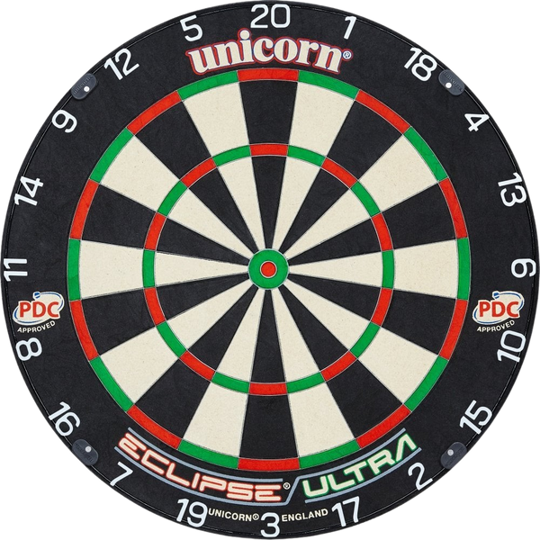 Unicorn Eclipse Ultra meta je kvalitetna profesionalna meta sa ultra tankim profilom žičane žilete za što manje reflektiranih strela. Meta je napravljena od prvoklasnog sisala, koji se, međutim, obrađuje novom revolucionarnom tehnologijom u odnosu na konvencionalne mete. Beli metalni broj je savršeno vidljiv.
